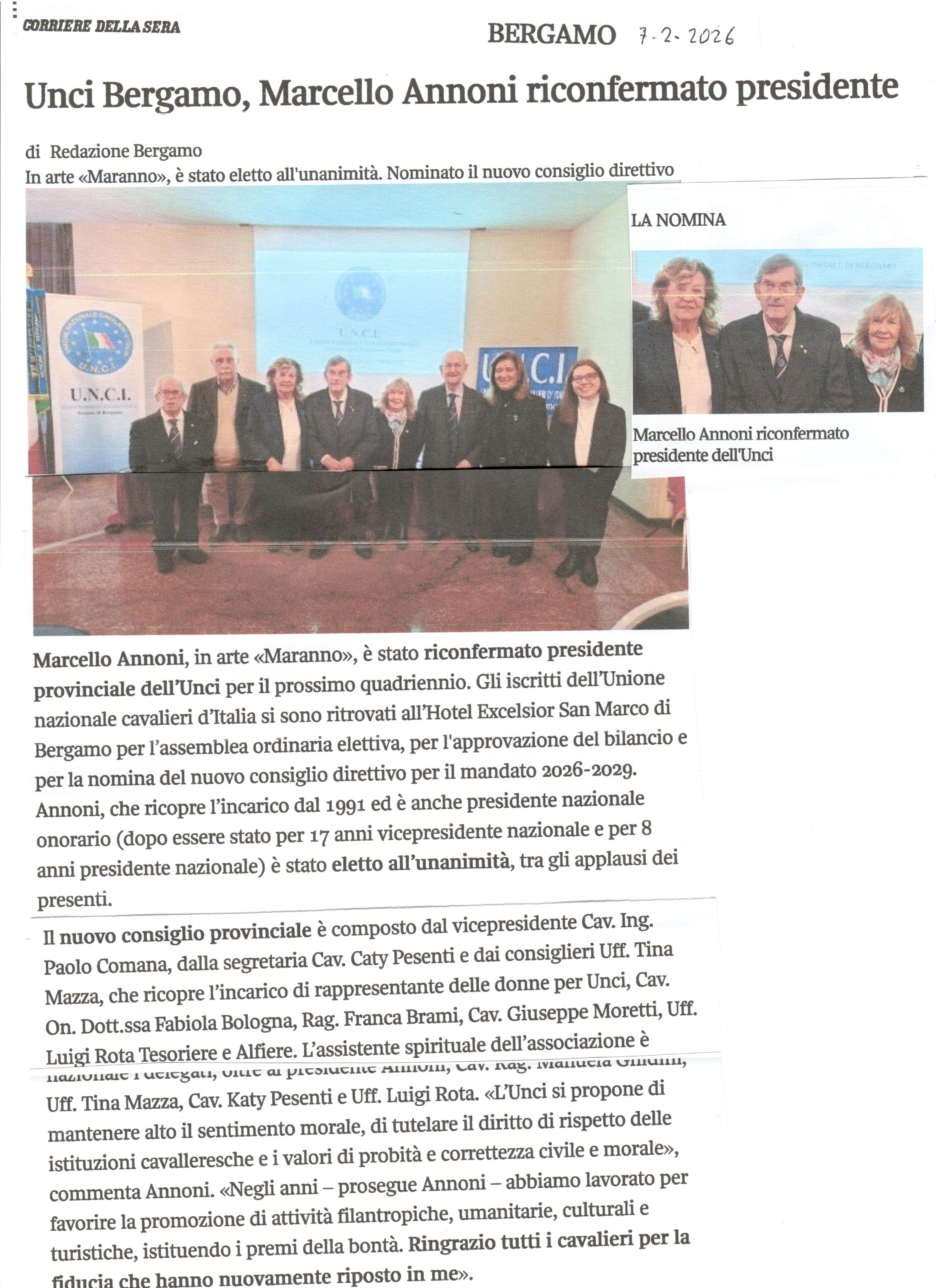 7 Febbraio 2026 - Corriere di BG - Nuovo Consiglio Direttivo