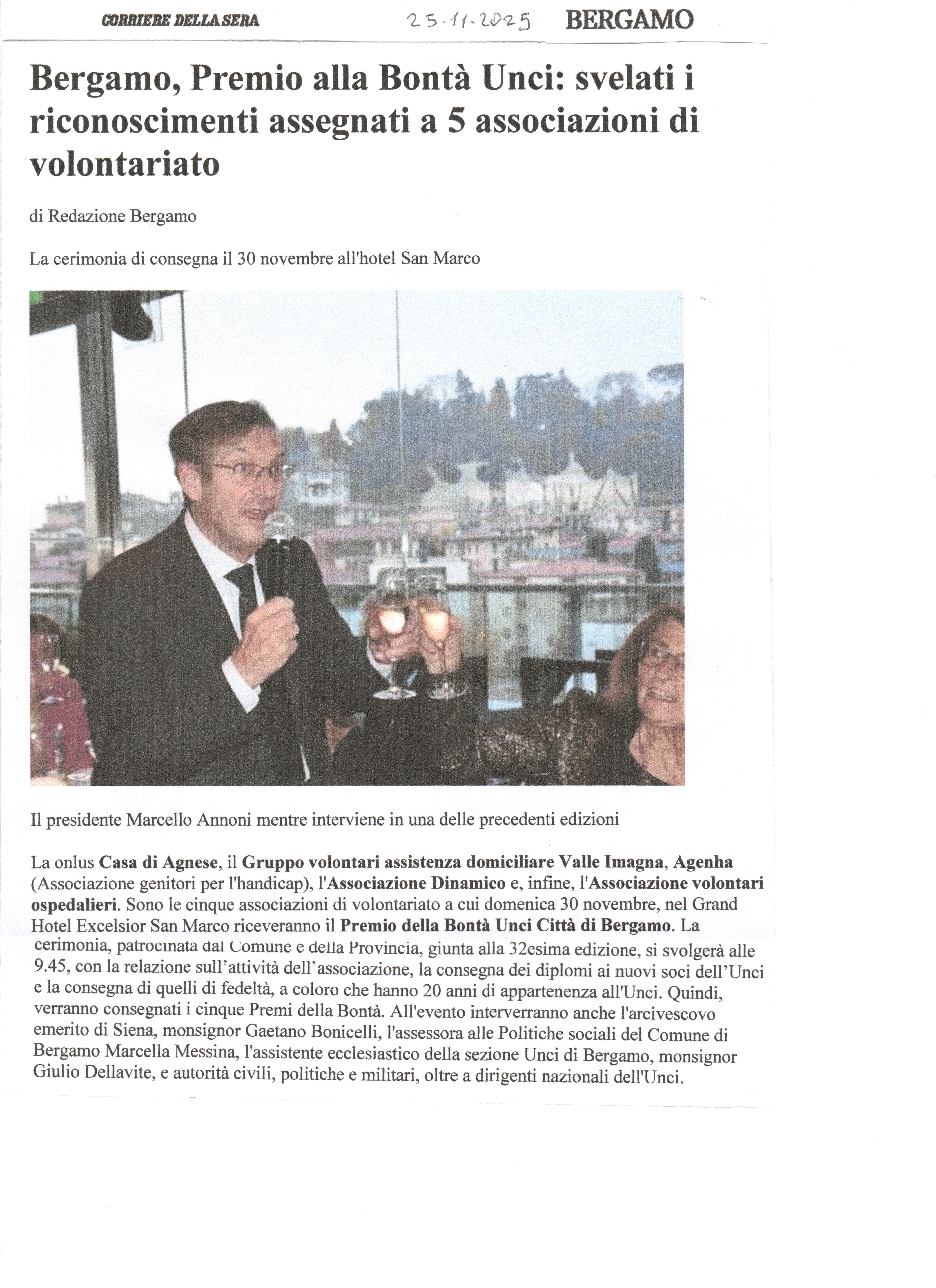 25 Novembre 2025 - Corriere della sera - Riconoscimenti Premio Bontà