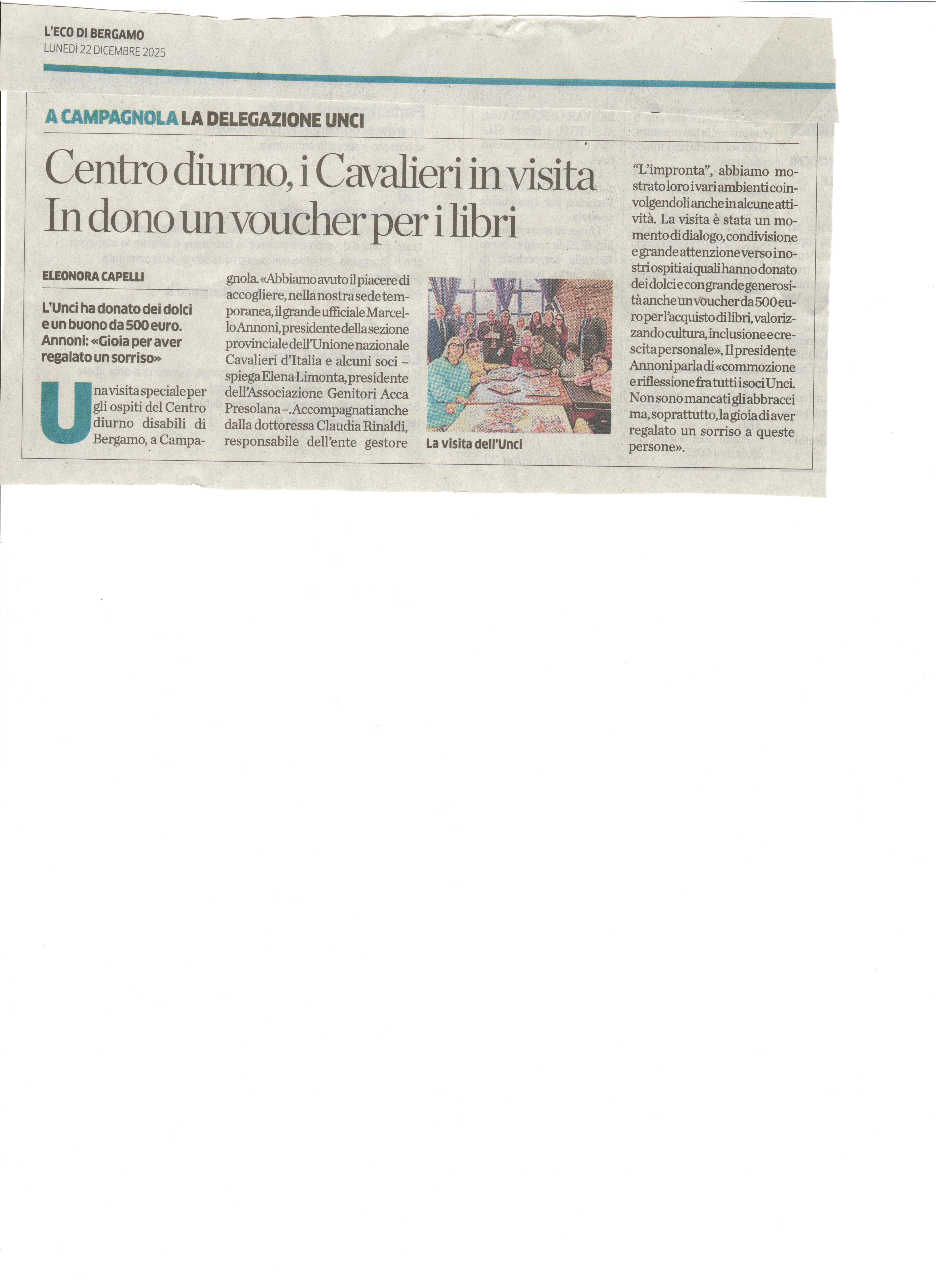22 Dicembre 2025 - Eco di Bergamo - Visita Centro Diurno Disabili