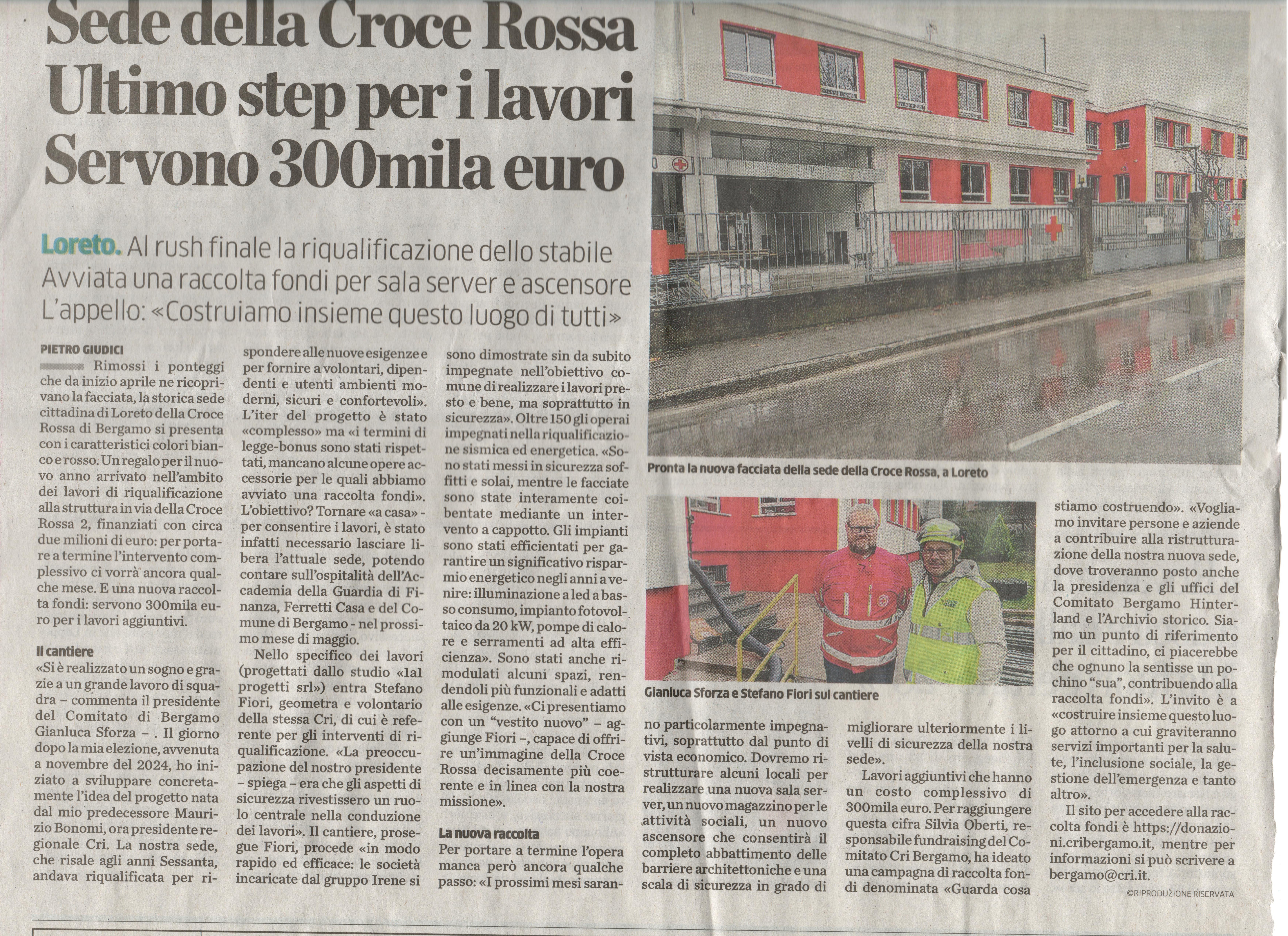 8 Gennaio 2026 - Eco di Bergamo - Donazione CRI