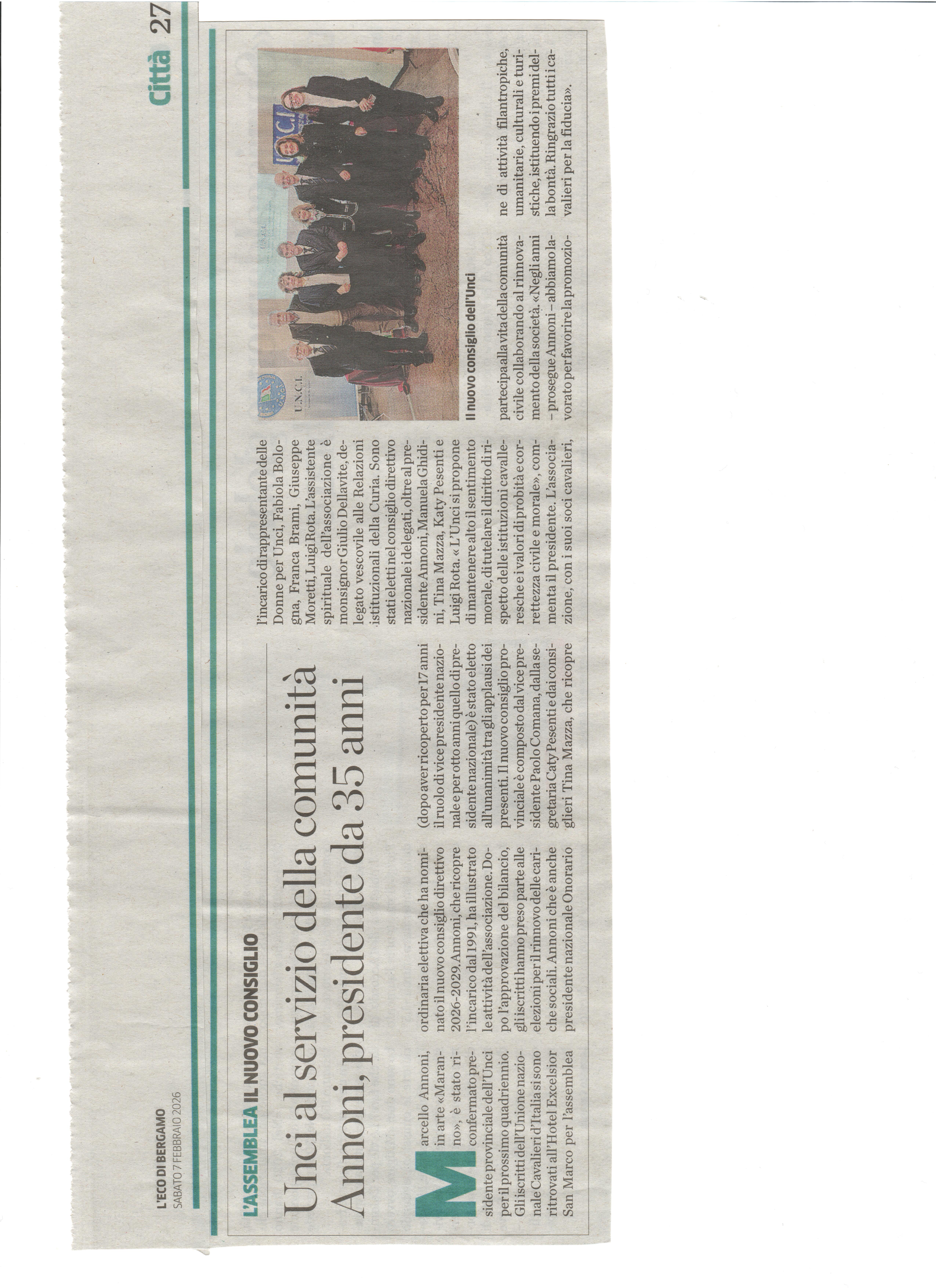 7 Febbraio 2026 - Eco di Bergamo - Nuovo Consiglio Direttivo
