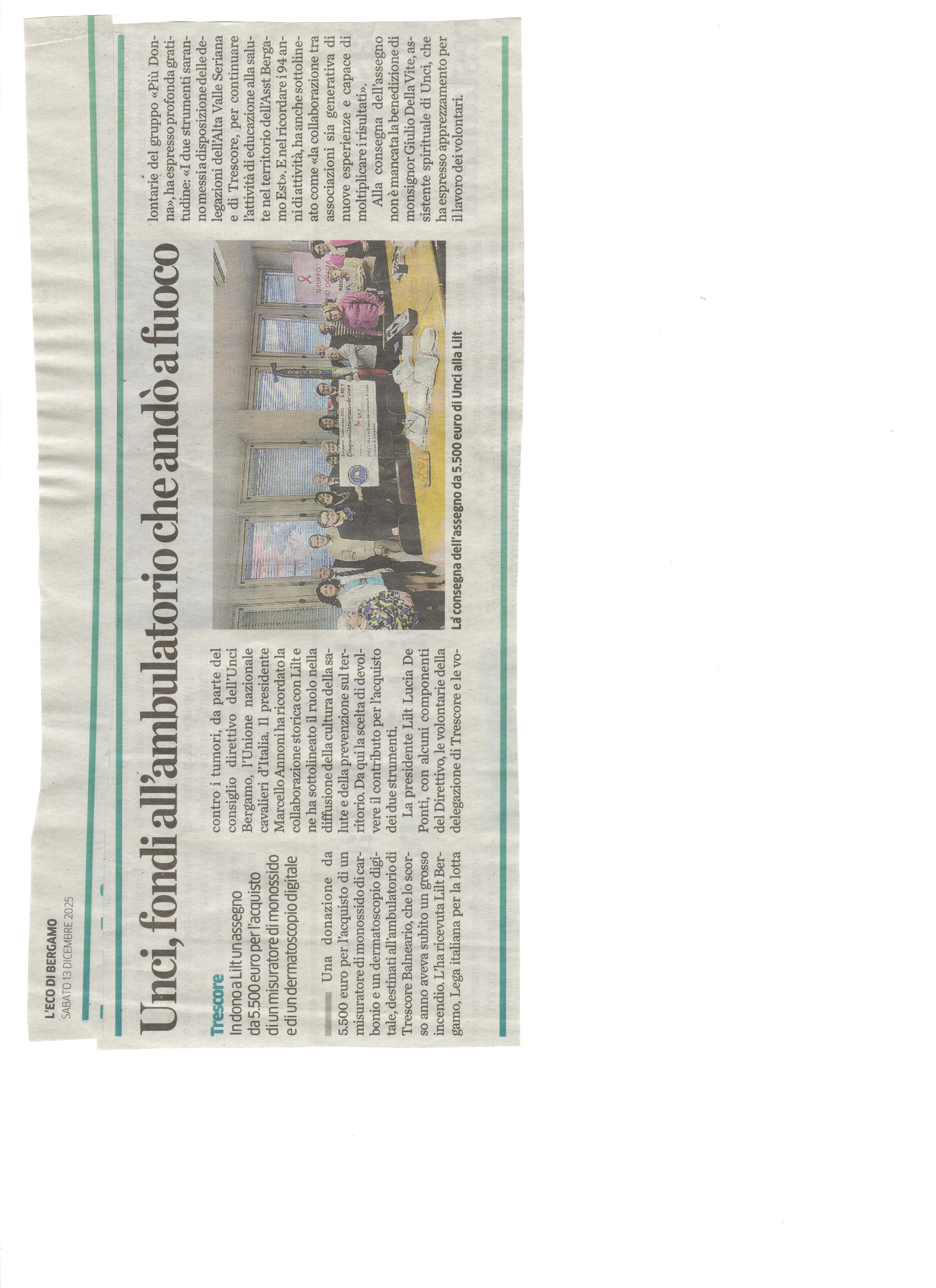 13 Dicembre 2025 - Eco di Bergamo - Dono LILT